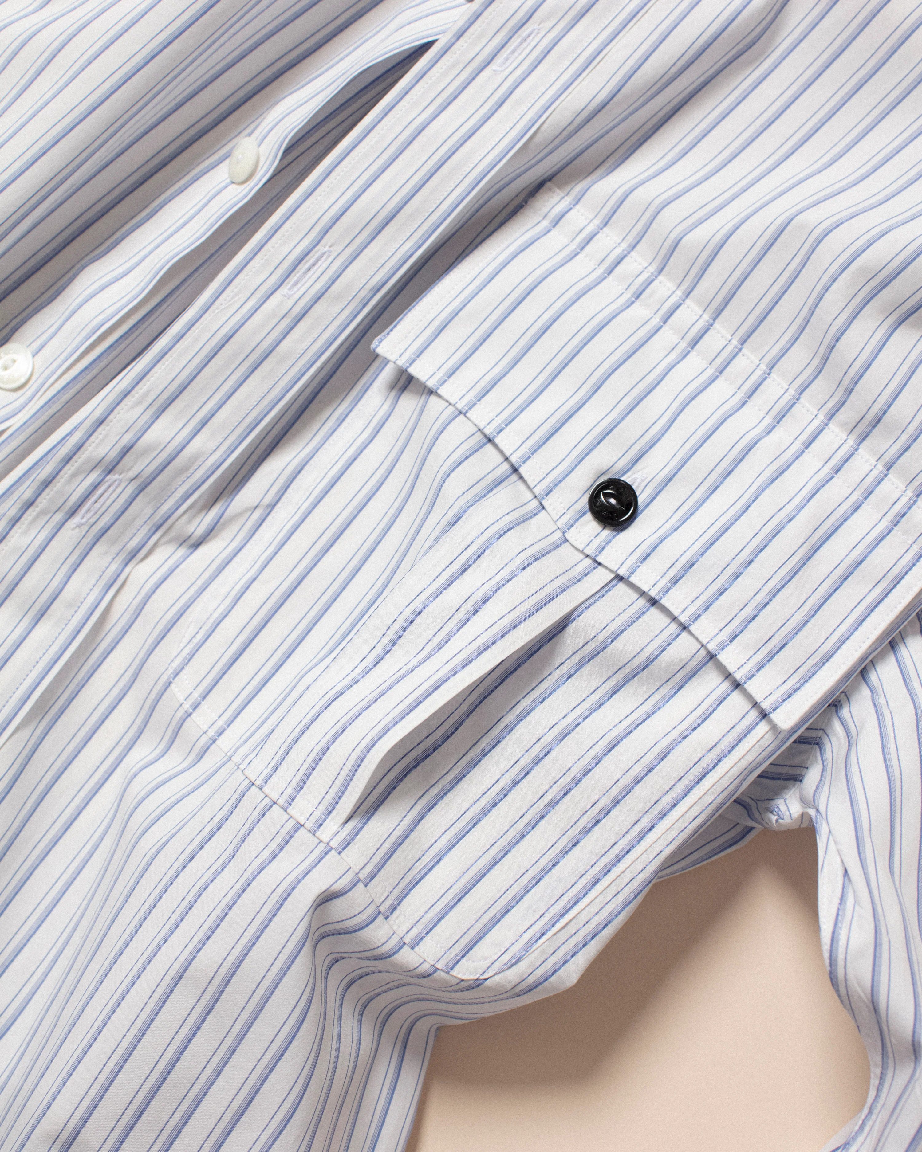 NU-00002 is built on a classic block with a box pleat back - giving plenty of movement and ease - with neatly cut shoulders for a refined and elegant silhouette. Its military heritage is nodded to, though not before being gently raised on a dais of almost paradoxically fine twin-needle detailing on yokes, seams, and flap chest pocket - a pocket with more than enough space for sunglasses, pens, and a note or two. Great with cuffs rolled and crumpled, or pressed and tails tucked.